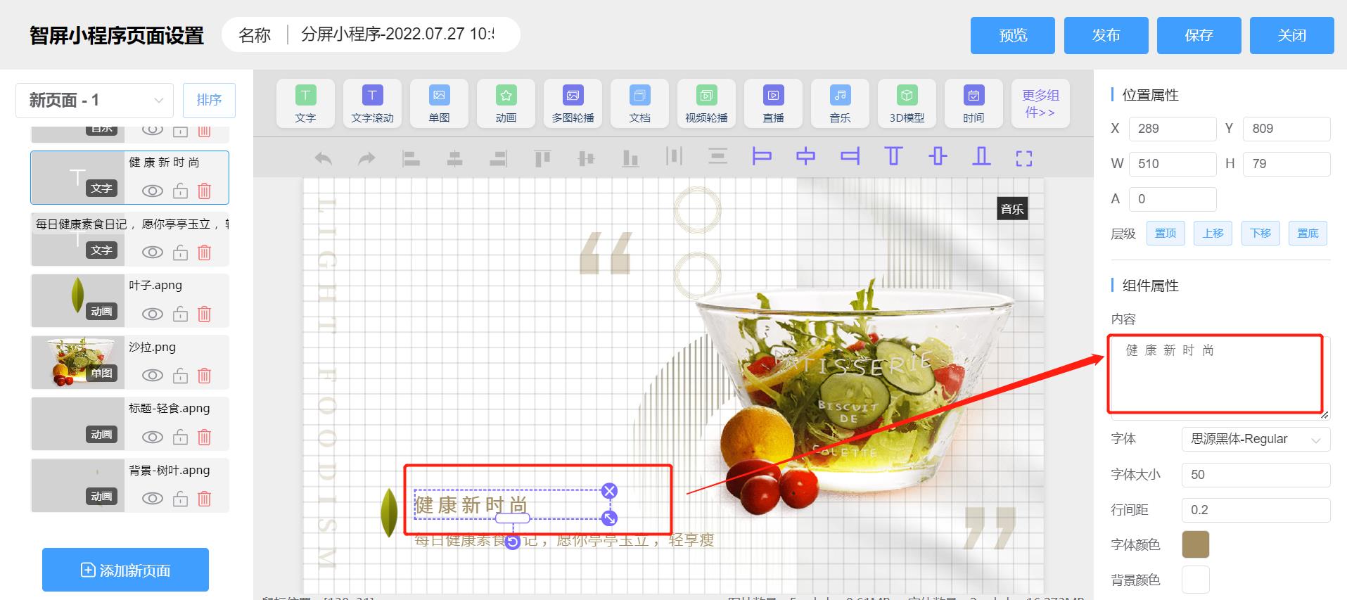 2.在下方的组件中选择要编辑的文字,点击编辑,打字即可。