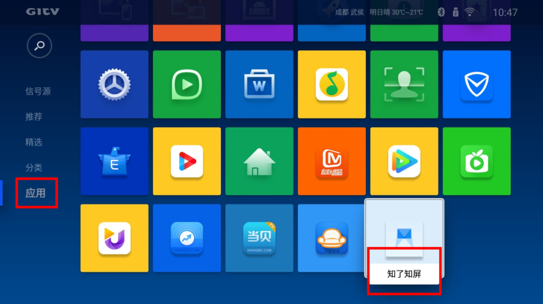 8.下载安装成功后在电视机【应用】里即可看到知了知屏APP。