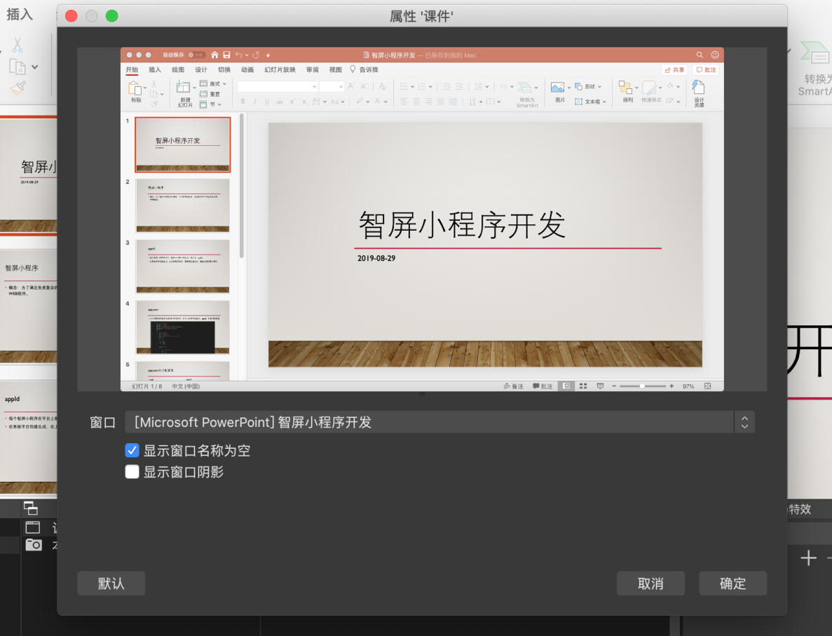8.点击“确定”后,在“窗口”中选择事先已经打开的“课程 PPT”。